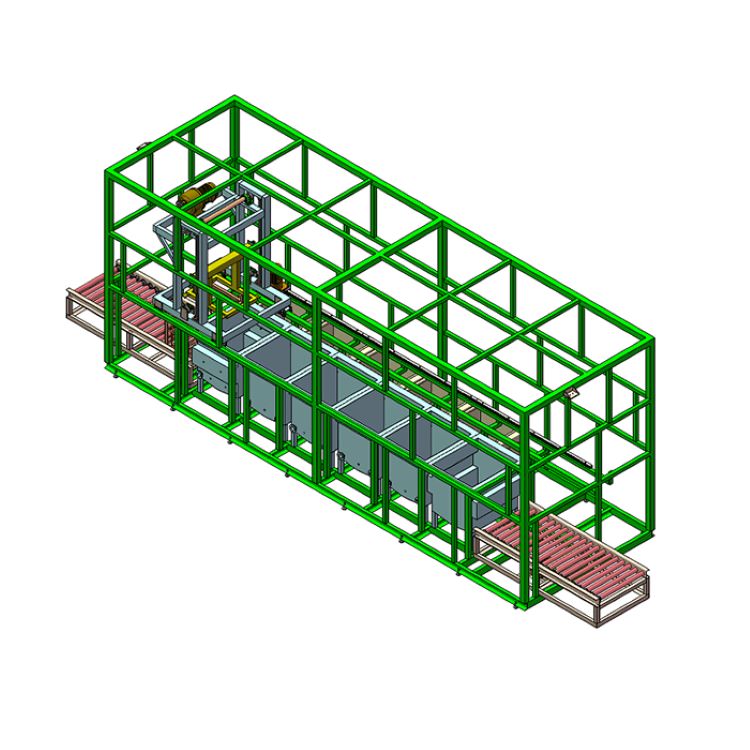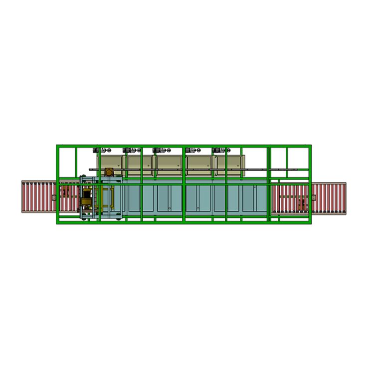 ---清洗流程:人工装框上料(动力滚道输送)→超声粗洗(超声+电加热+温控+循环过滤)→超声精洗(超声+电加热+温控+循环过滤)→鼓泡漂洗(循环过滤+温控)→鼓泡漂洗(温控+长流水)→烘干(鼓风+温控+风泵)→烘干(鼓风+温控+风泵)→烘干(鼓风+温控+风泵)→烘干(鼓风+温控+风泵)→人工下料(动力滚道输送)
