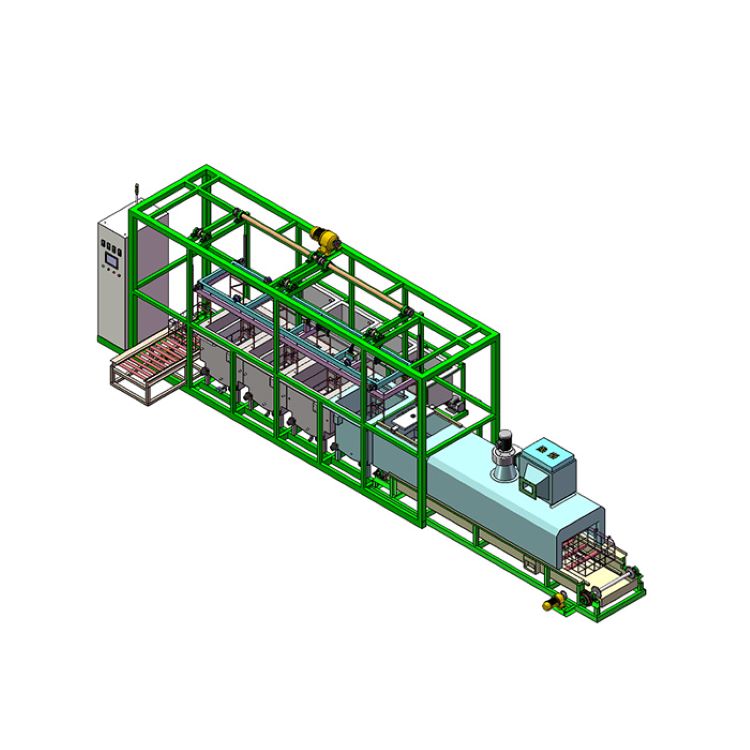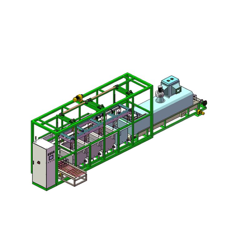 ---采用一套多臂机械手吊送工装篮,定位精度高,传动平稳,运行可靠。